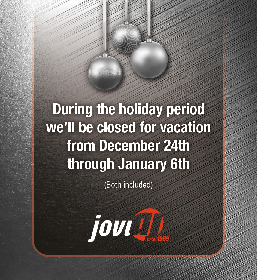 Christmas holidays During the holiday period we’ll be closed for vacation from December 24th through January 6th, both included.